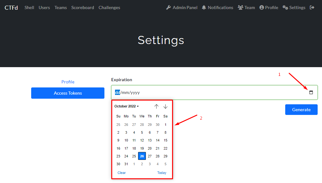 Set an expiration for the token (the default is 30 days) and click "Generate".