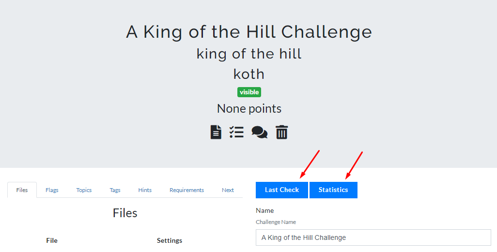 King of the Hill (KotH) Challenges involve a user taking control of a server and leaving their identifier on a specified target server/application. This indicates which user/team has control of the server. Then the scoring engine (CTFd) is supposed to monitor this target and award the user/team some amount of points.