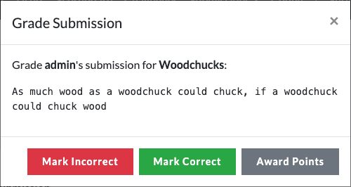 Then in the Admin Panel, admins are able to evaluate the submission and manually mark the submission as correct.