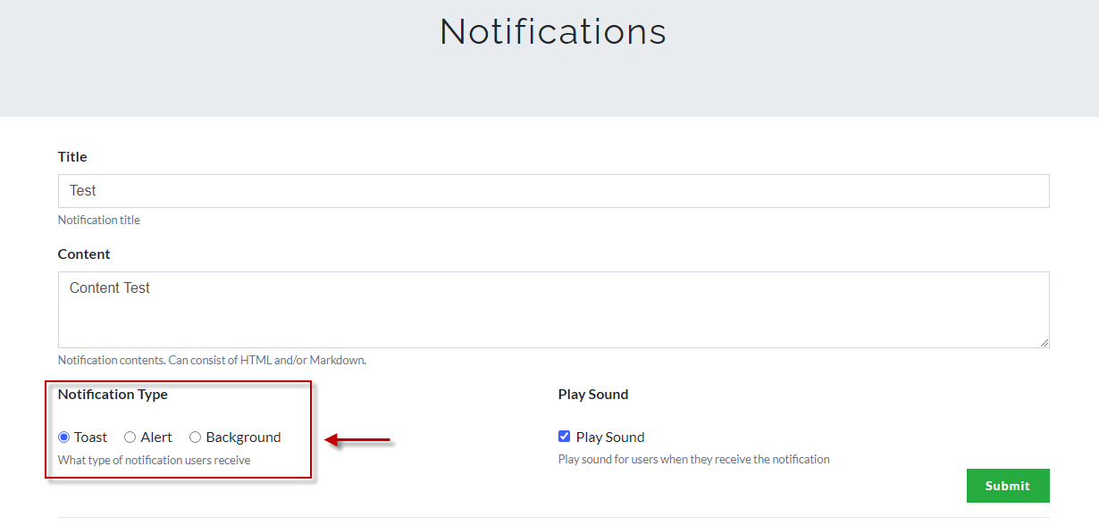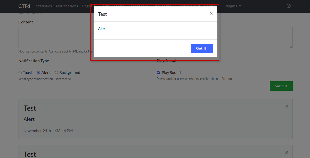 There are three types of notifications you can choose on CTFd which are the following: