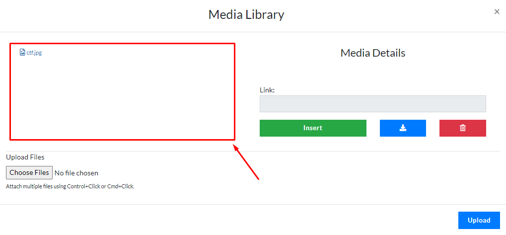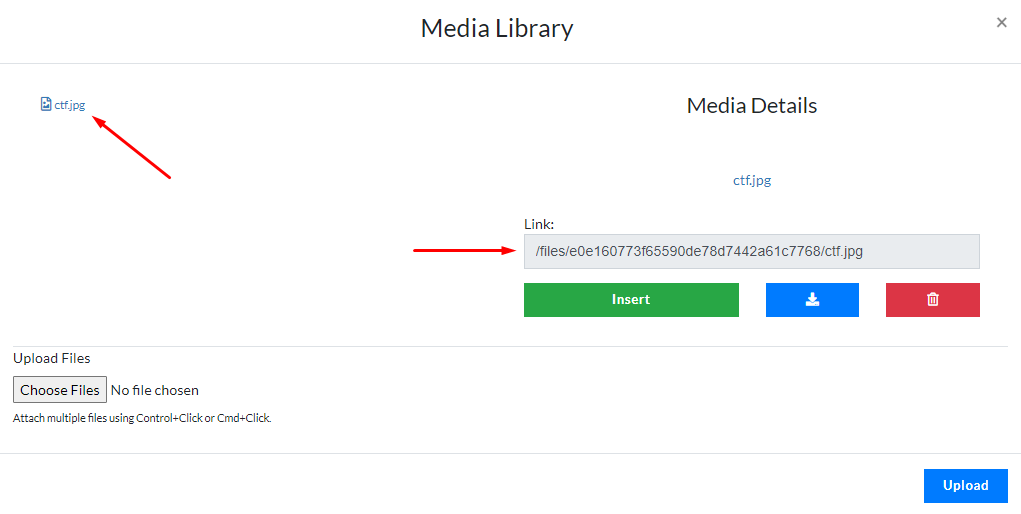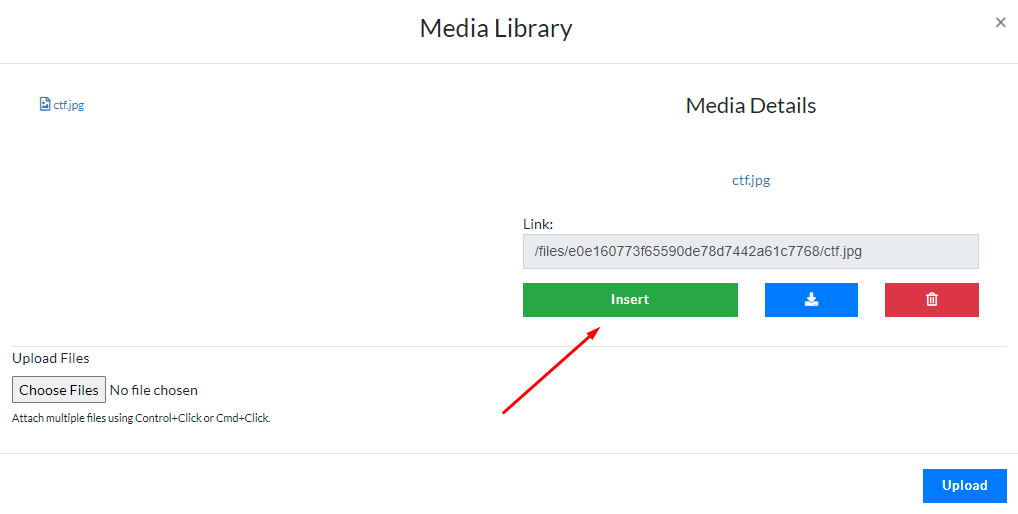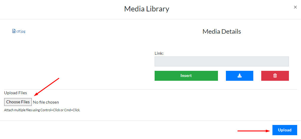 Upload files by clicking on Choose Files. Once you have selected a file to upload, click on Upload.