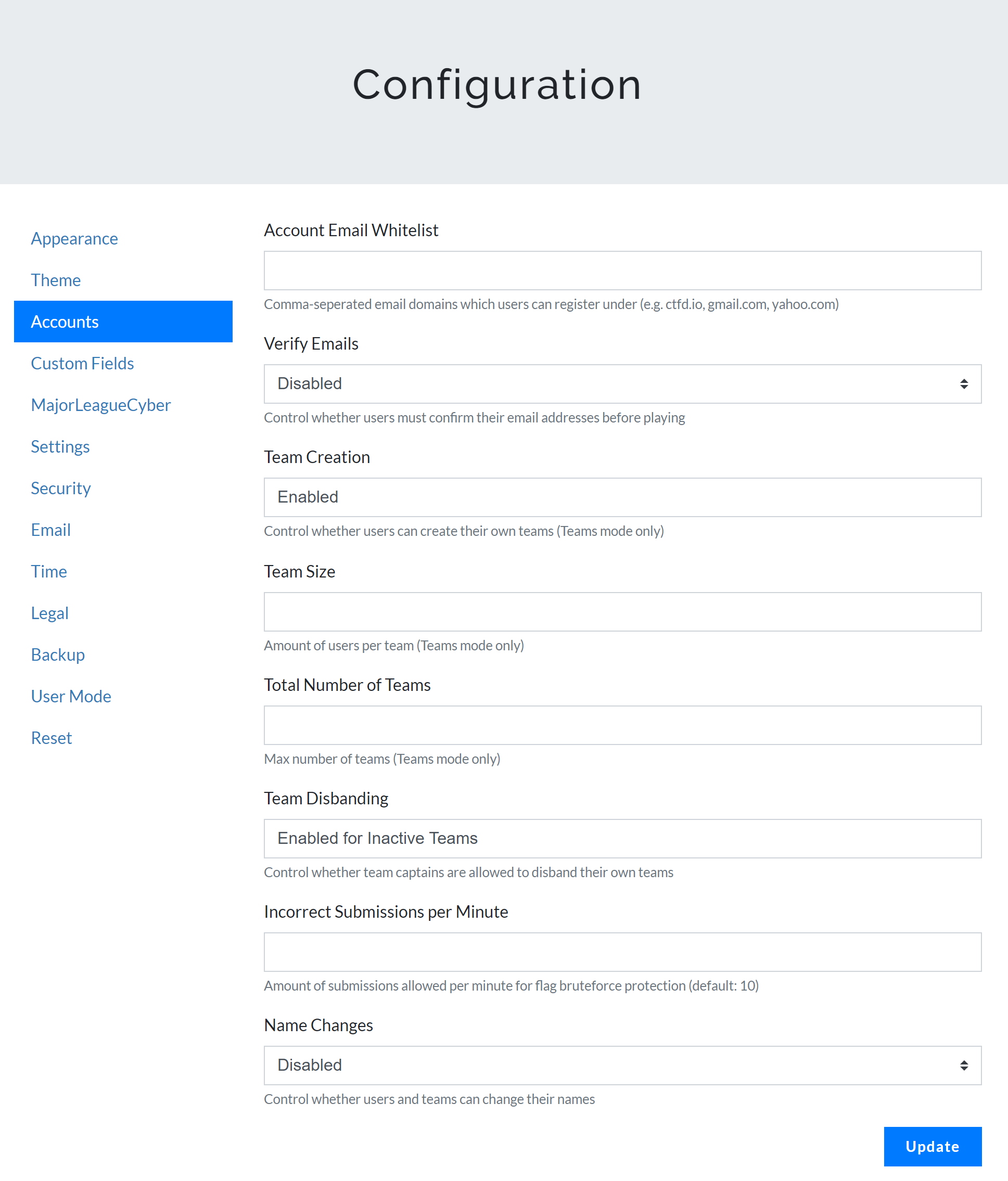 You can further configure these options when your CTFd instance is in Teams Mode. You can learn more about user or team modes in this article.