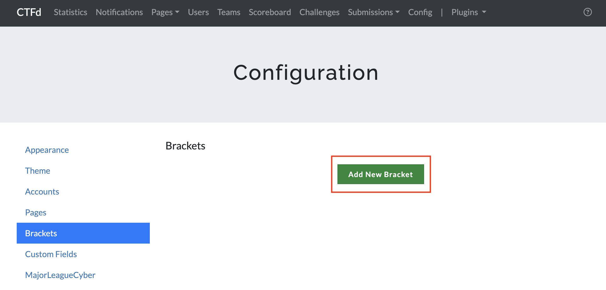 From the Brackets tab in the Config page, Admins can create Brackets: