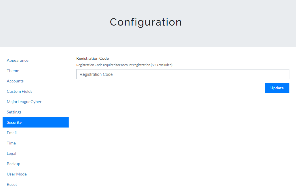 CTFd allows admins to restrict account registration to only those who know a registration code. Setting a registration code will ask users on the registration page for the code that will enable them to register.