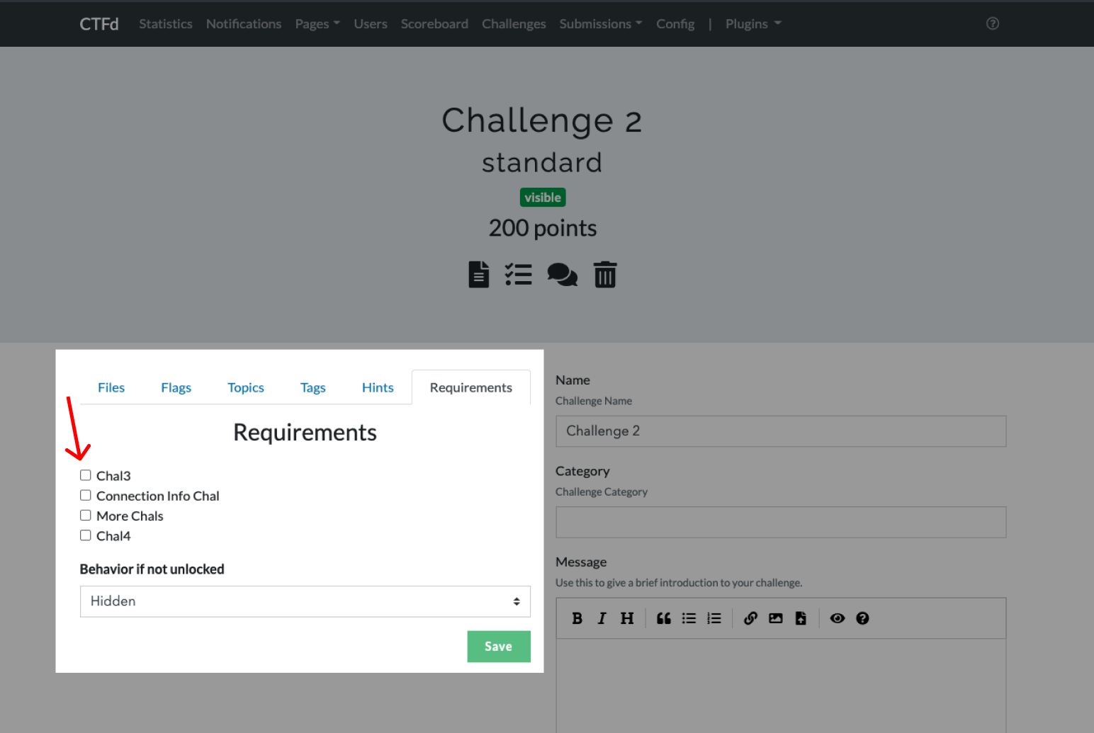 You will need at least 2 challenges to create an "unlockable" challenge in CTFd