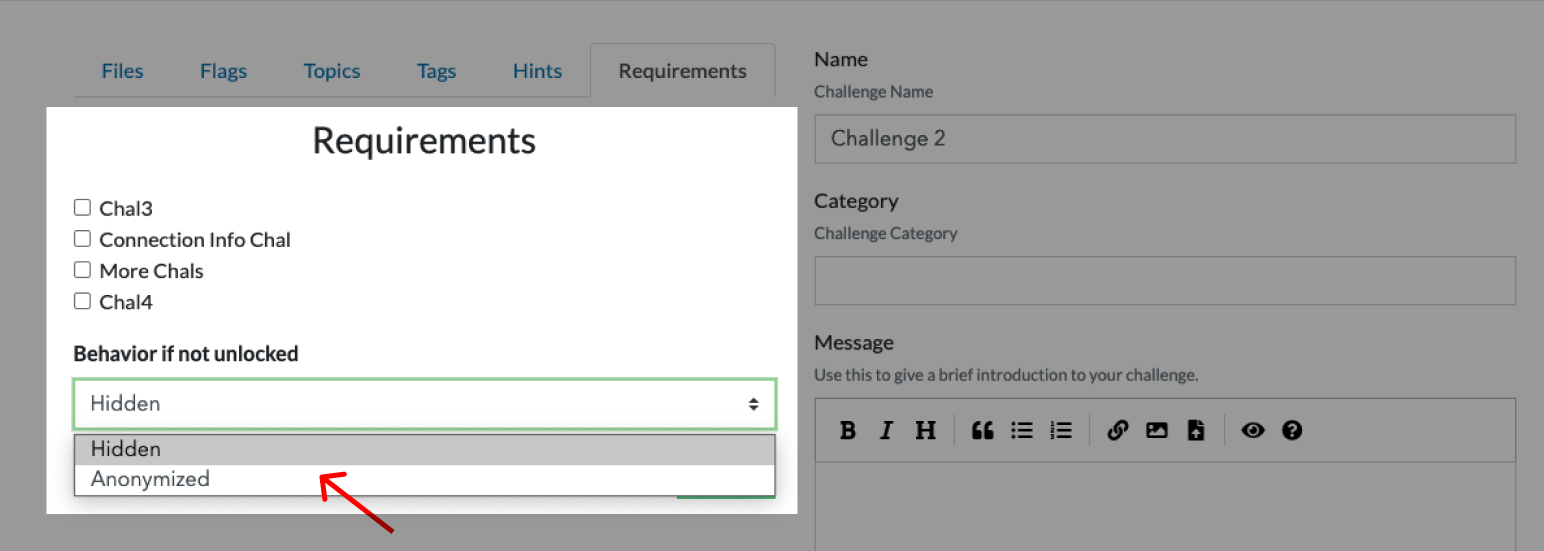 You can choose between hiding the challenge completely or anonymizing the challenge.