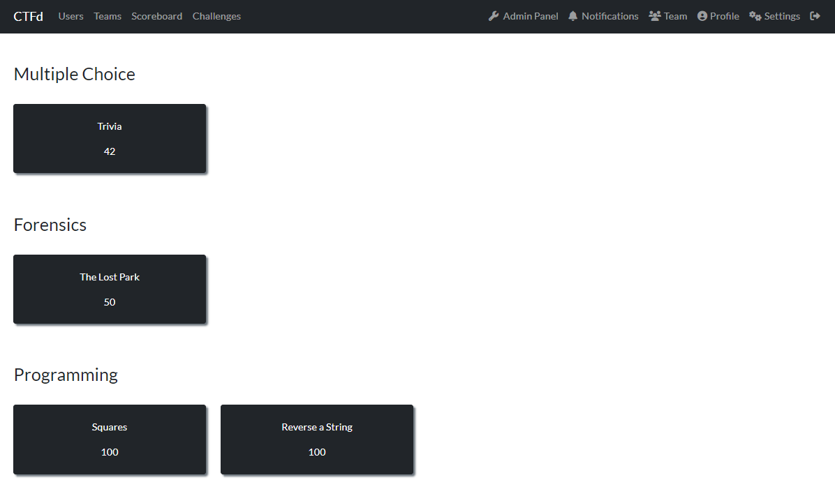 Challenges are grouped into categories. The order in which how these categories appear can be sorted, as well as the challenges within each category.